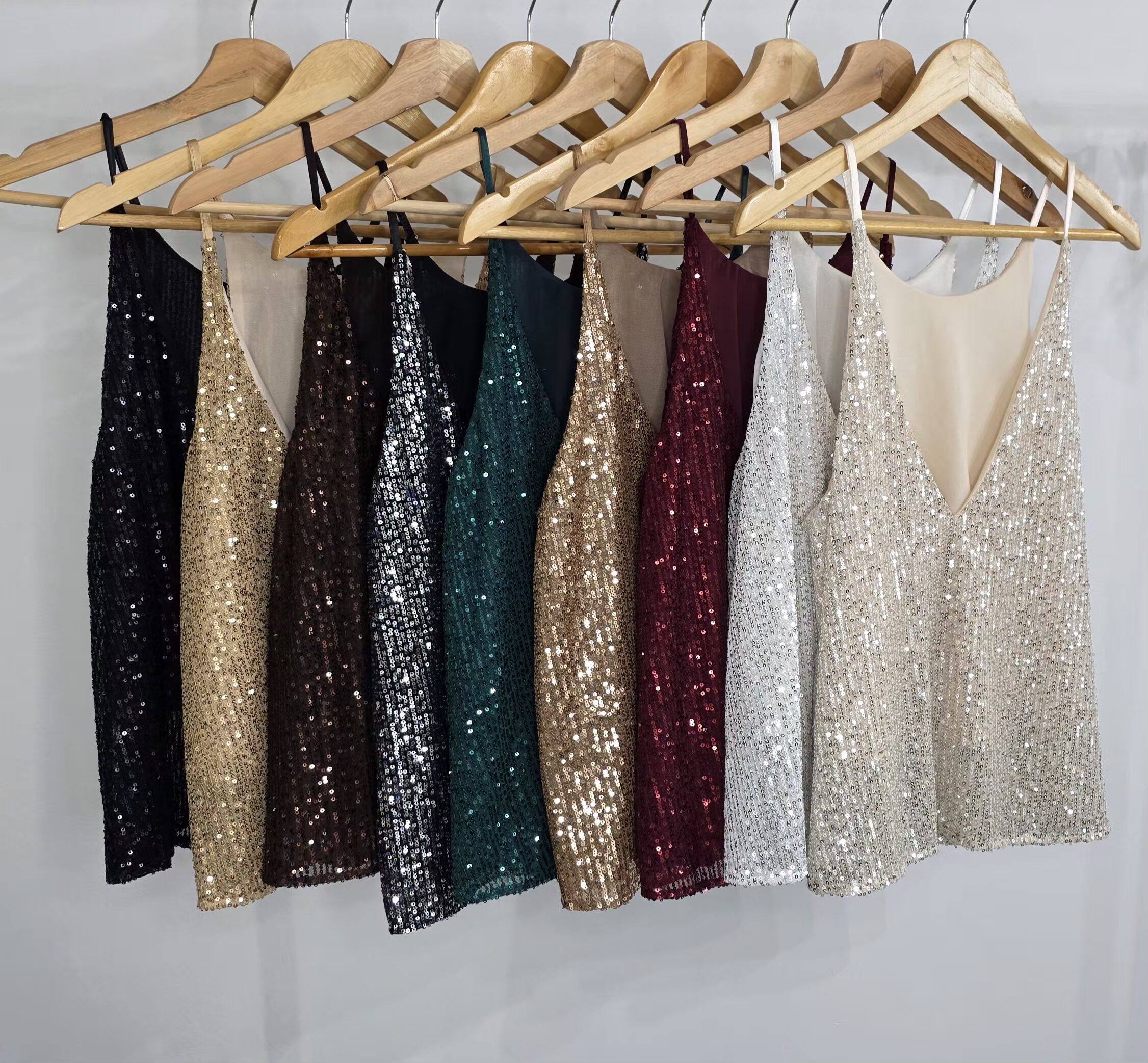 Musculosa de pailettes escote reversible ,talle unico ,tela con spandex