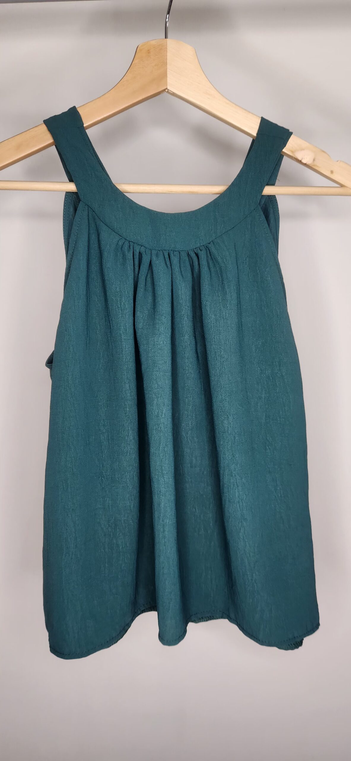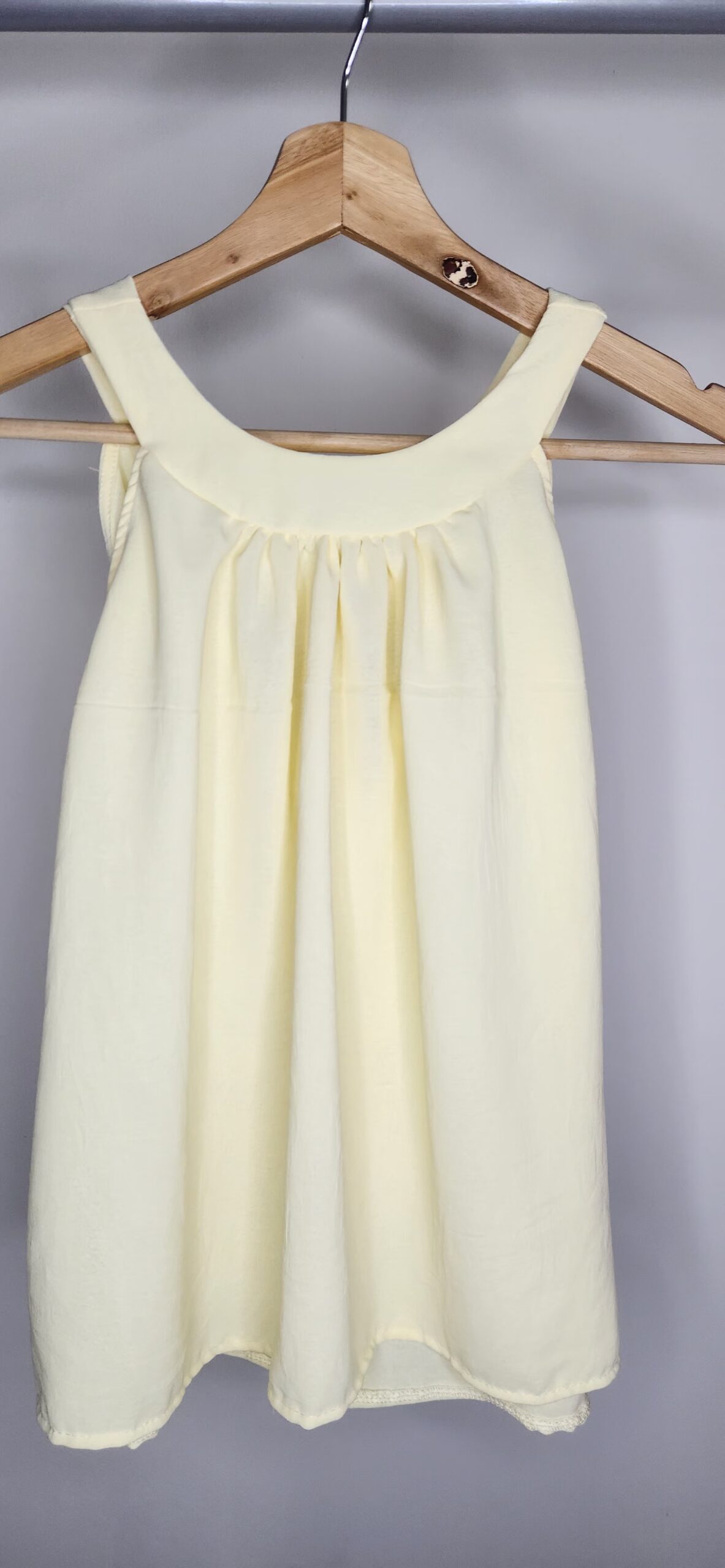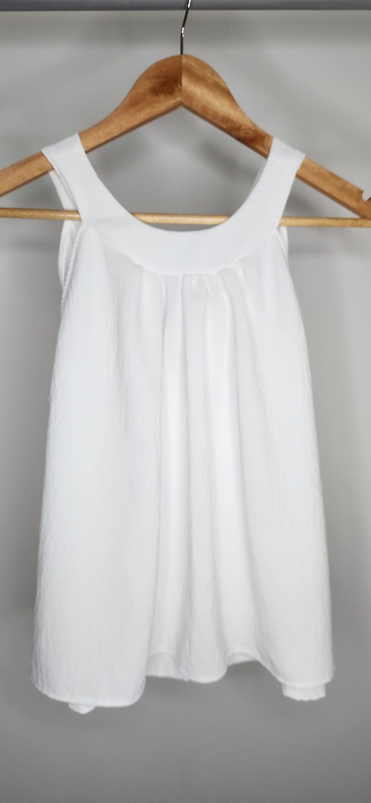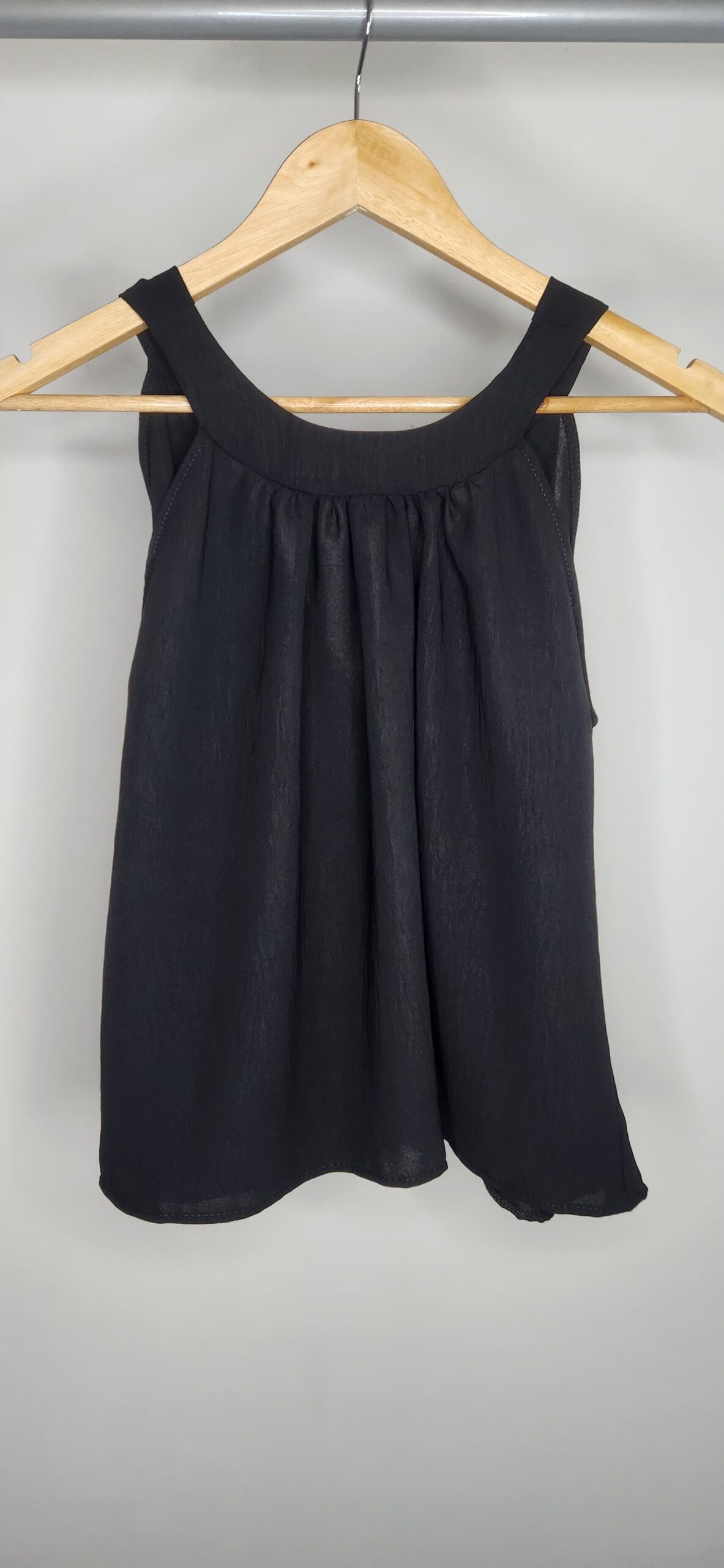 Blusa de crep,cuello redondo,detalle de frunce en la parte delantera,lazo en la parte de la espalda