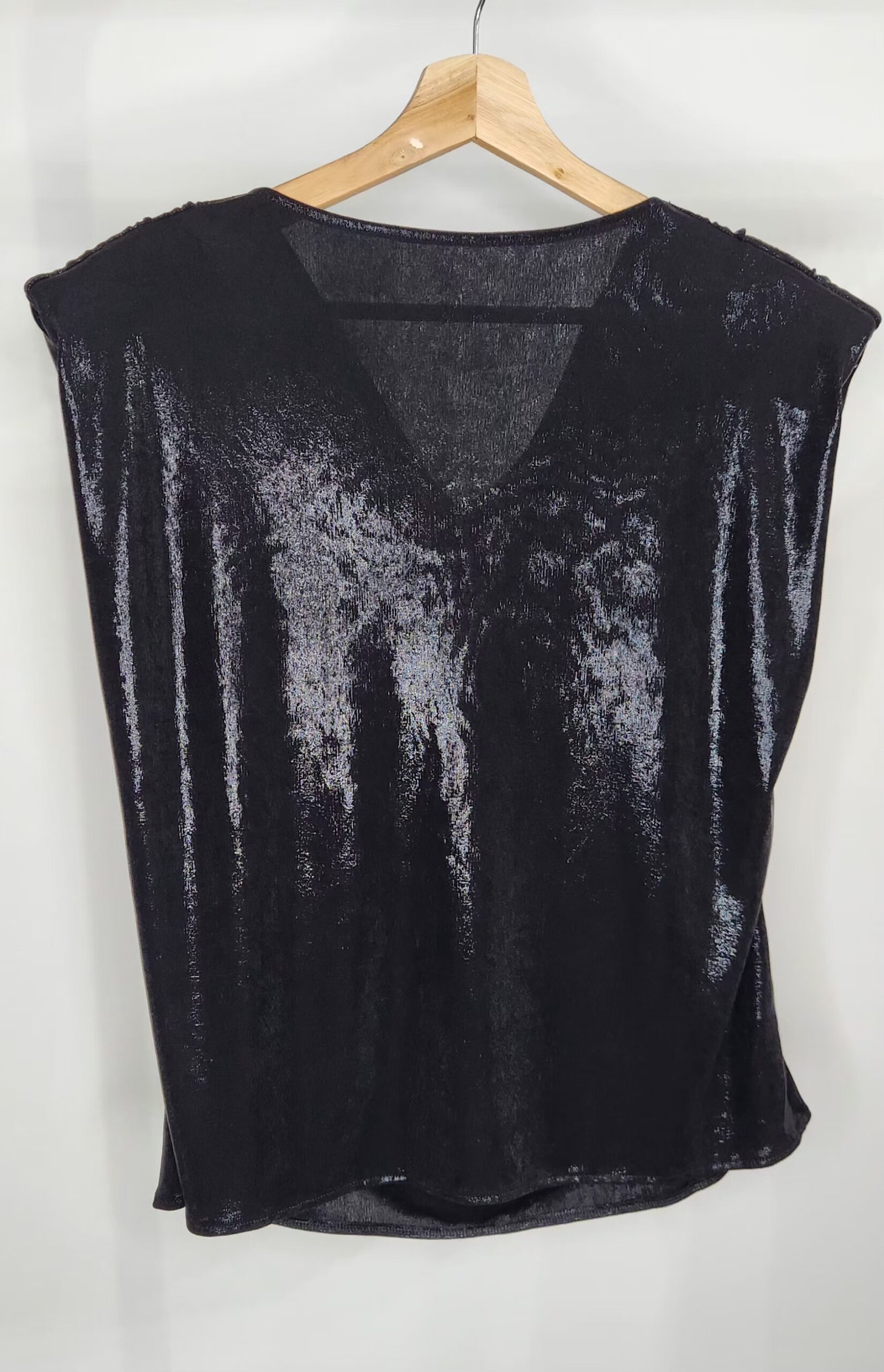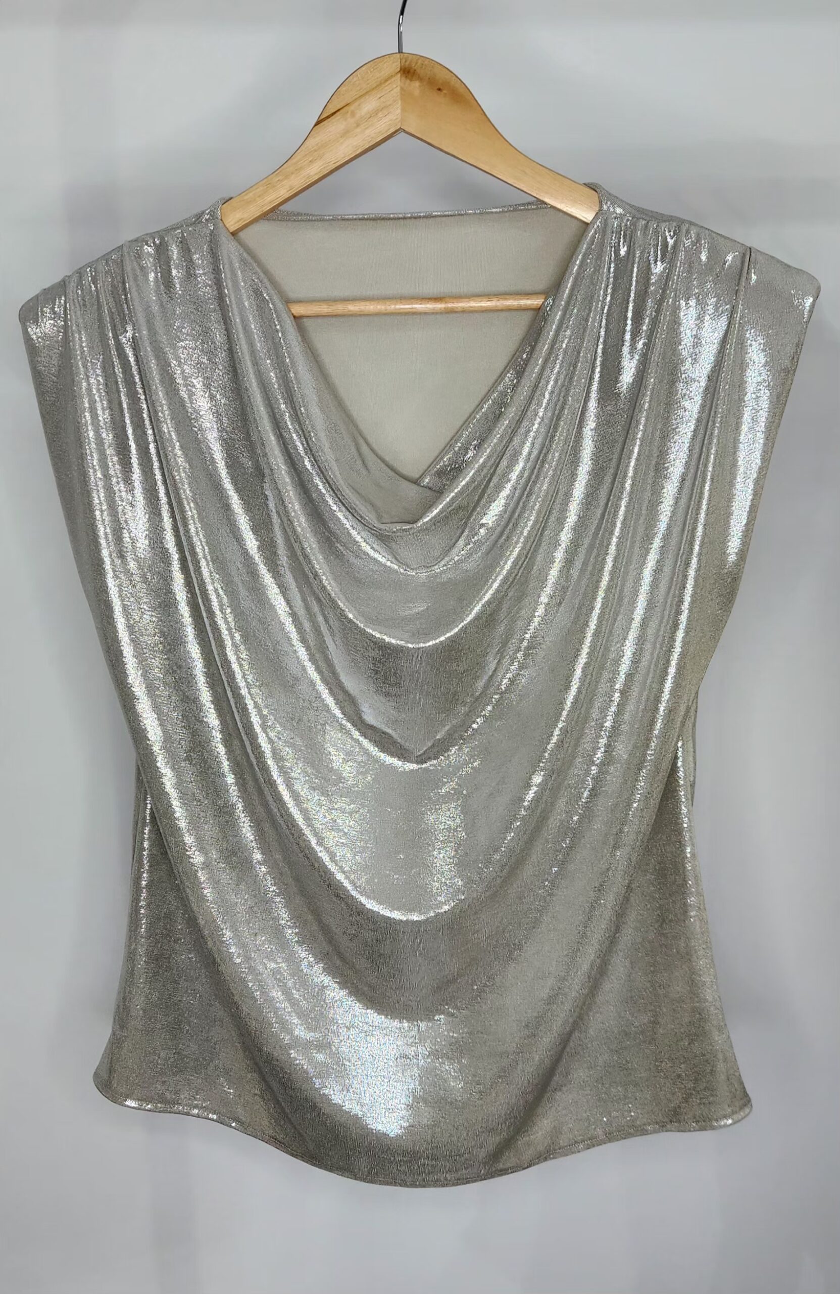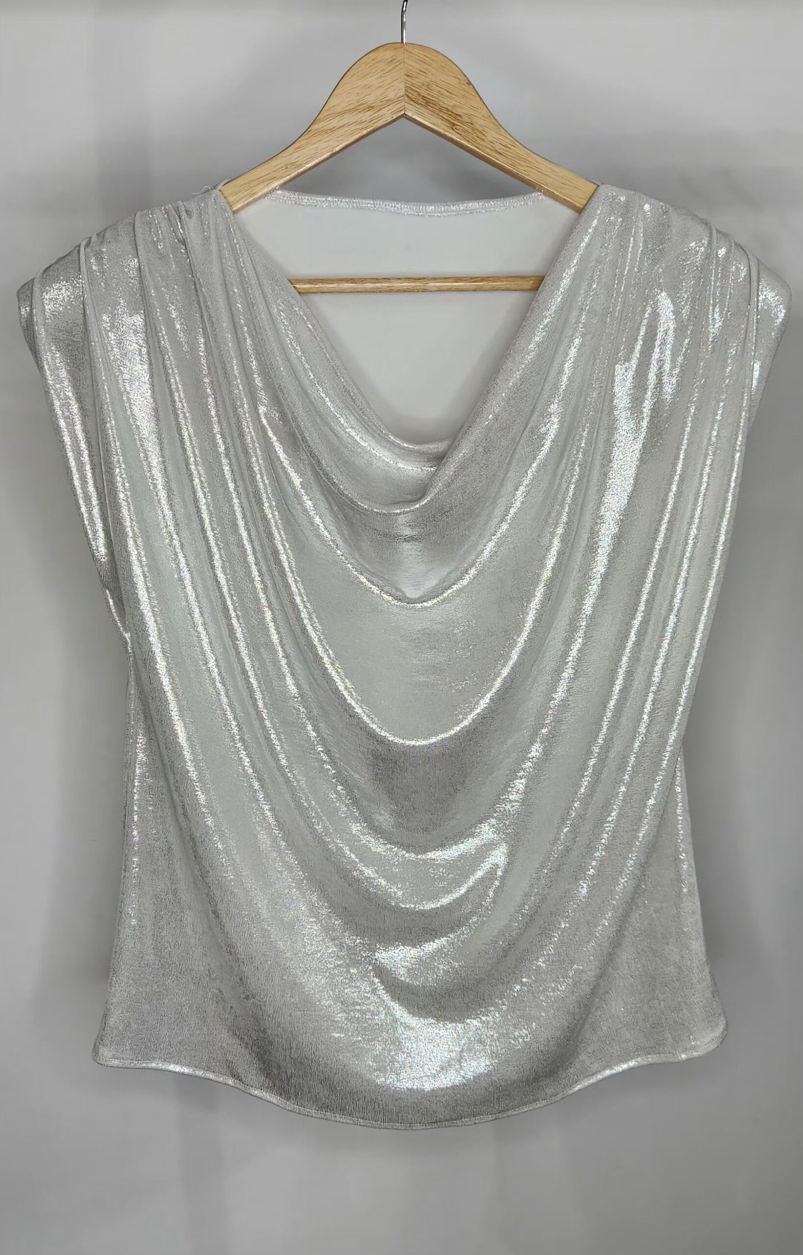 Blusa tela foil,sin mangas,escote buche,tela con spandex,muy amplia