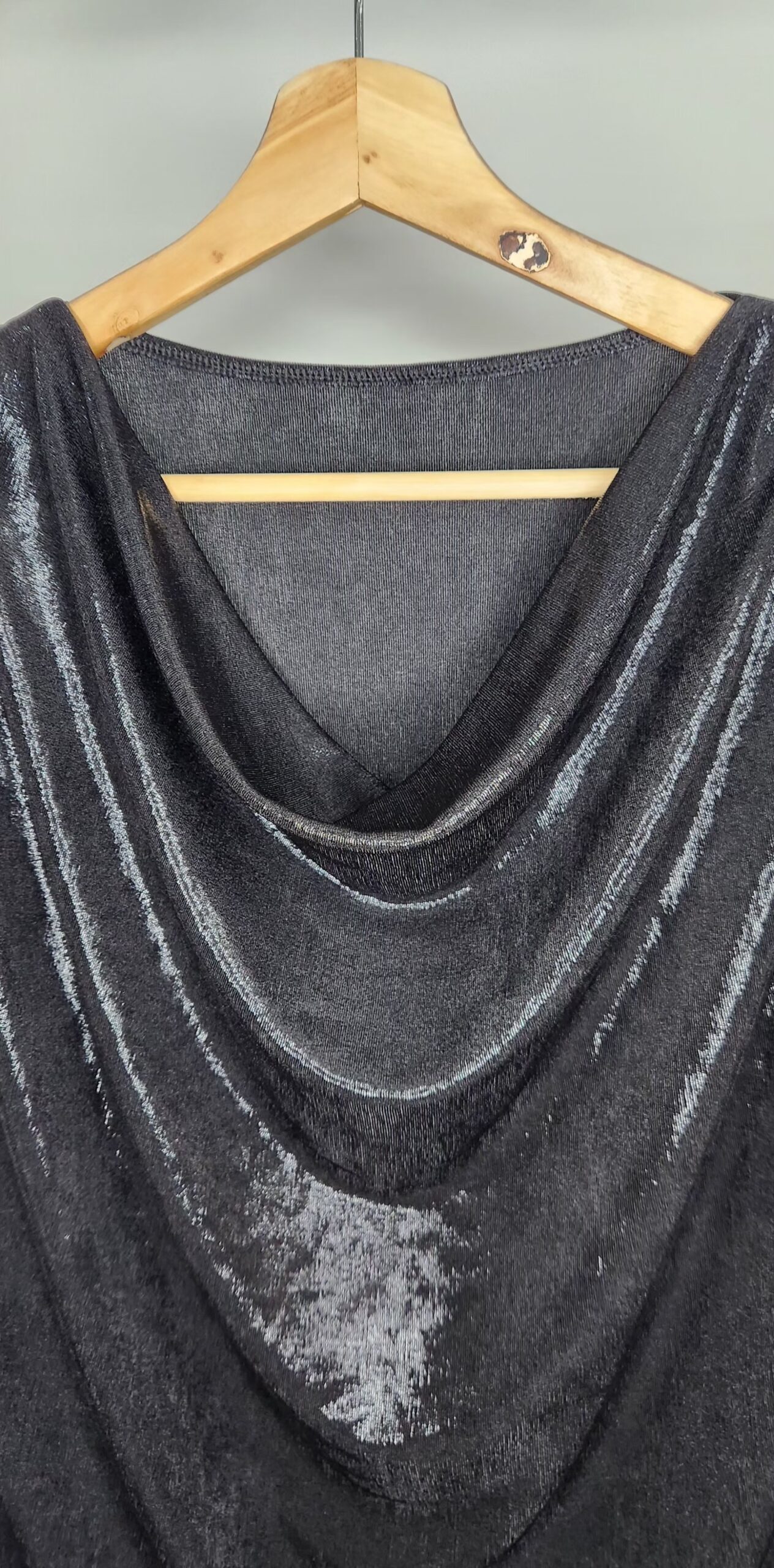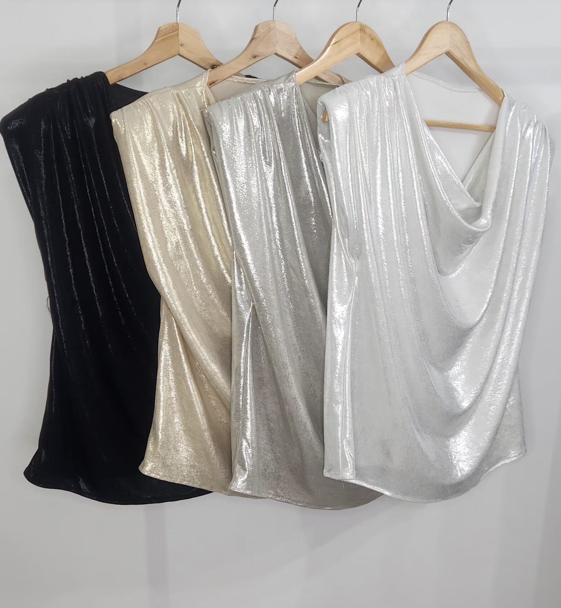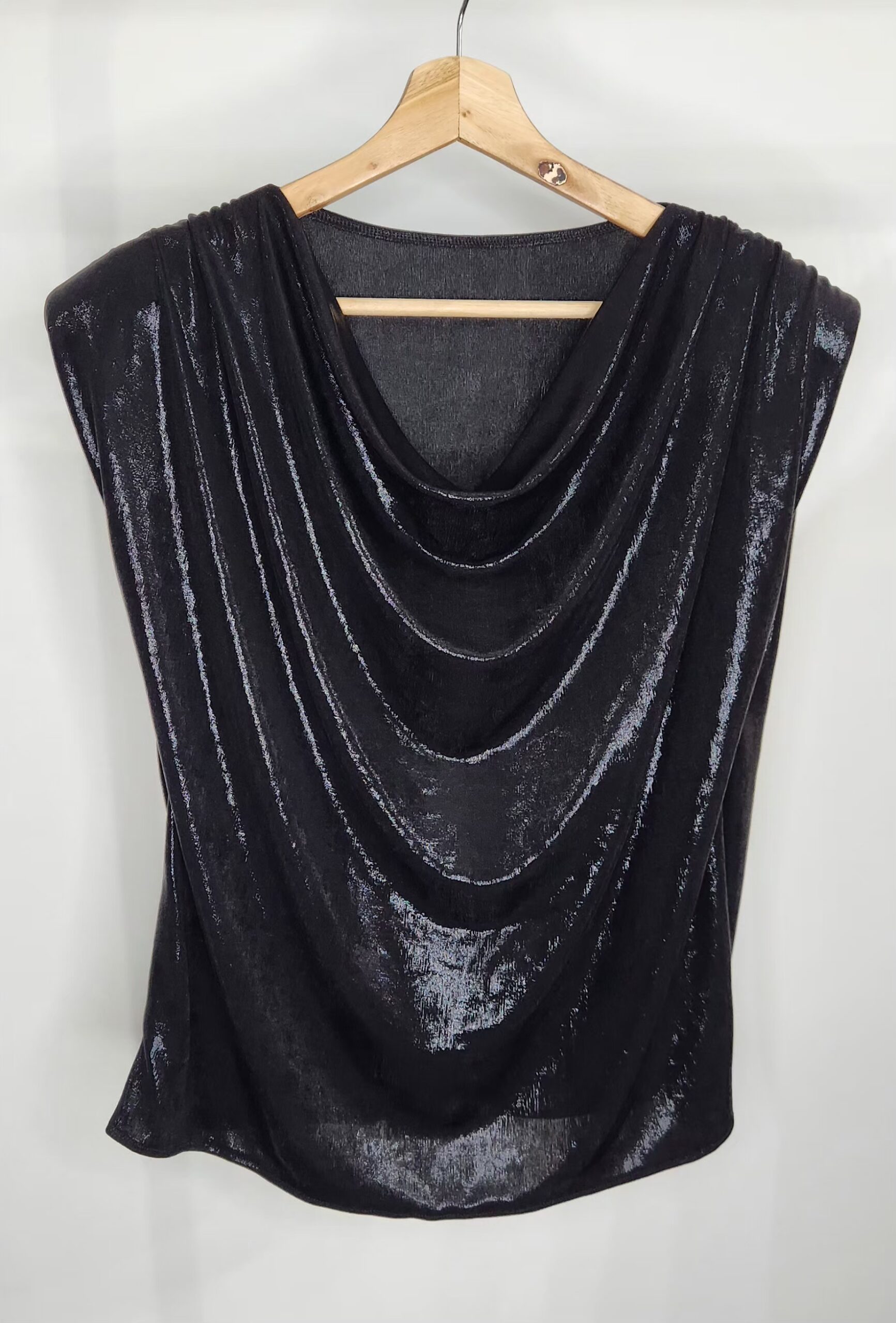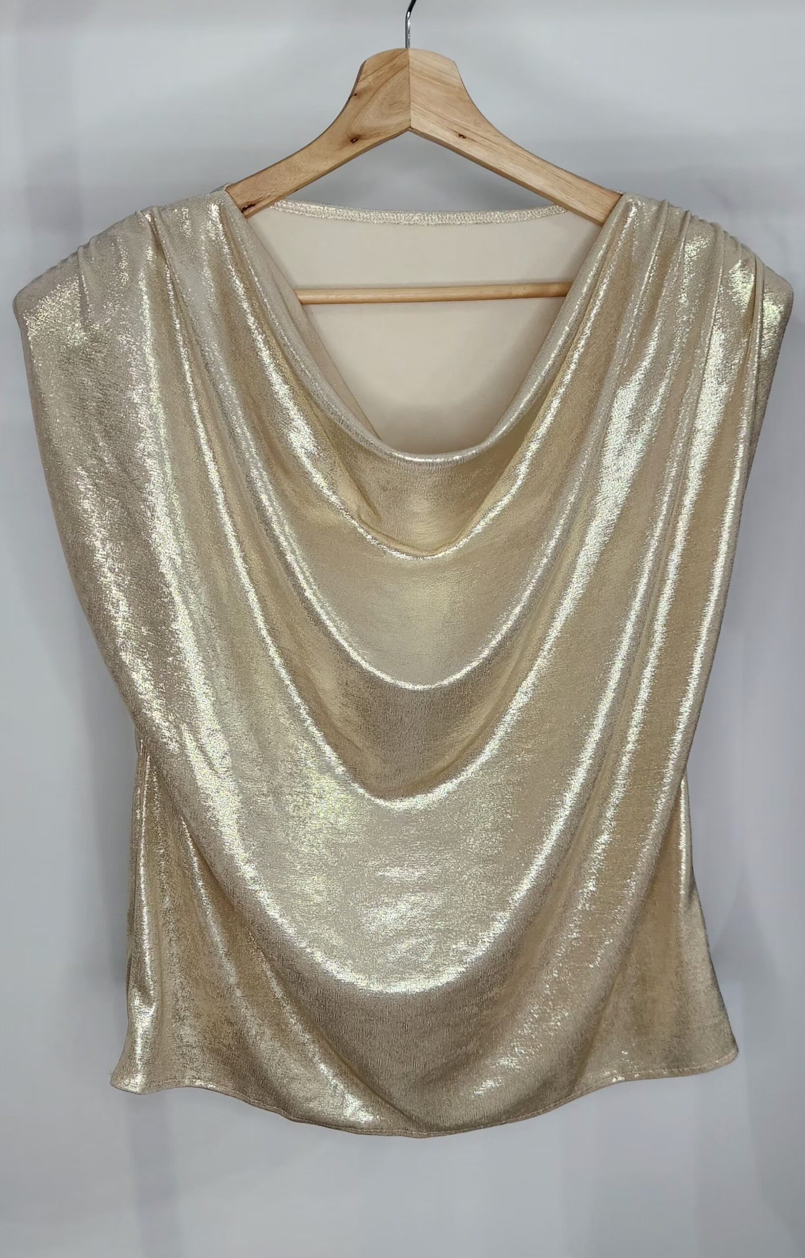 Blusa tela foil,sin mangas,escote buche,tela con spandex,muy amplia