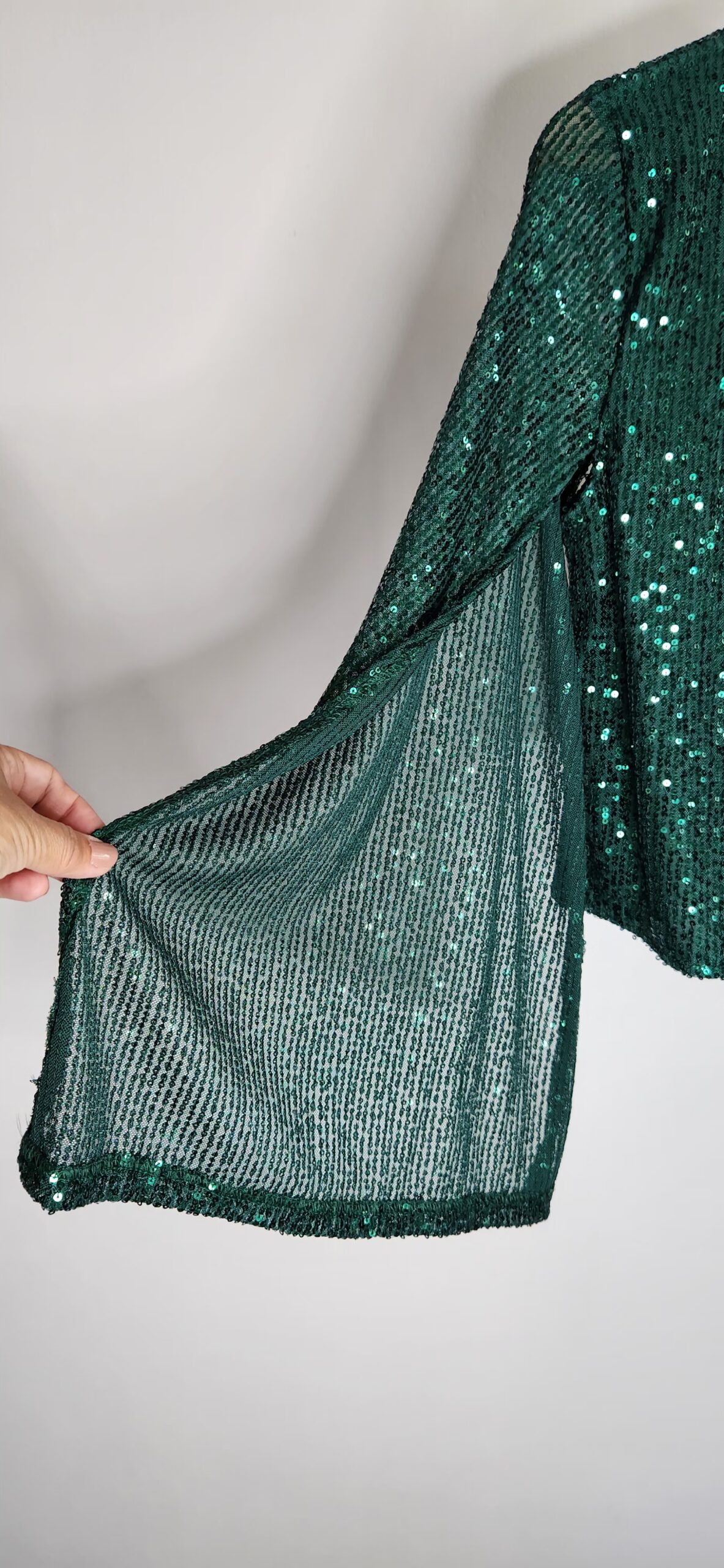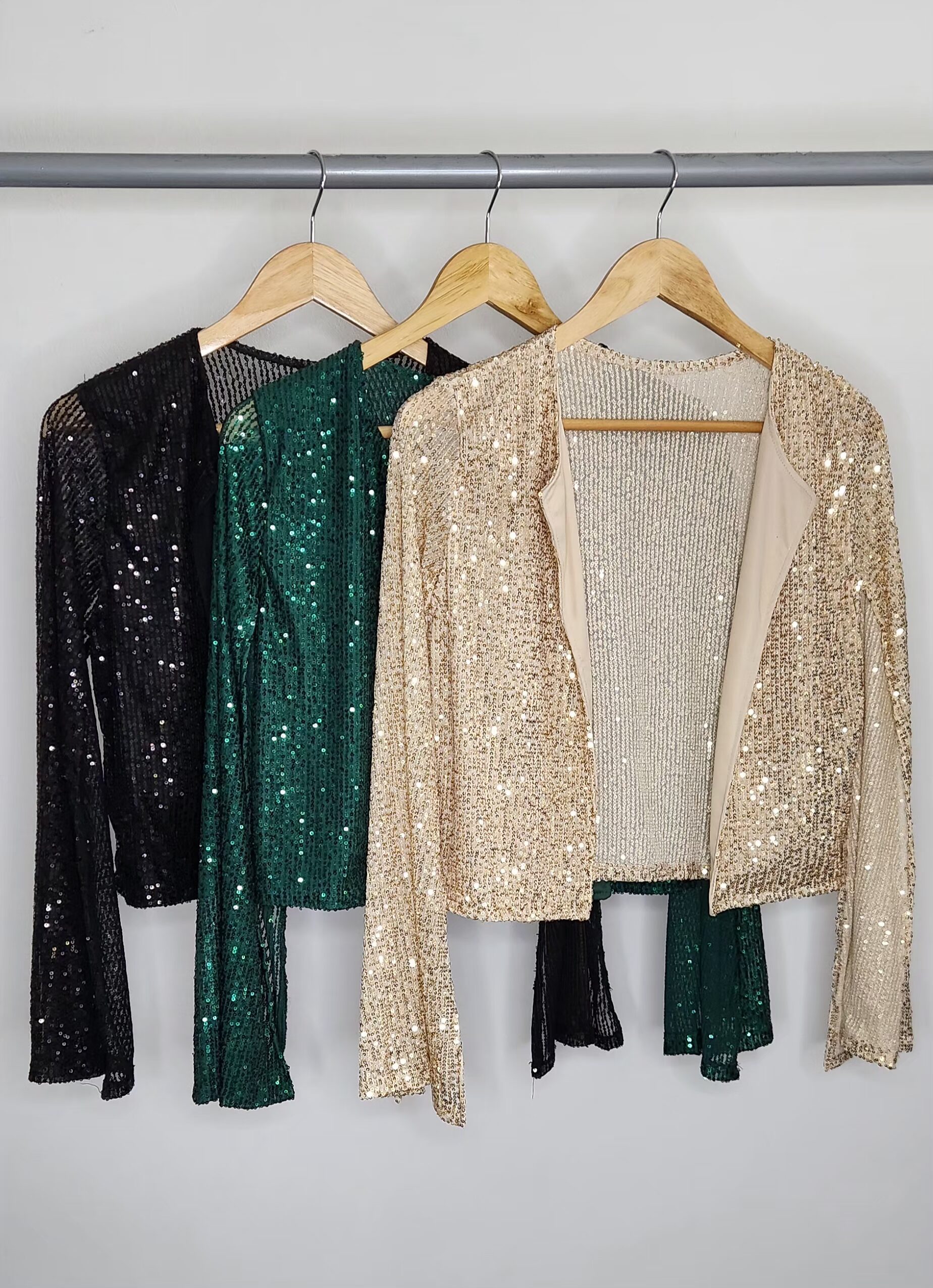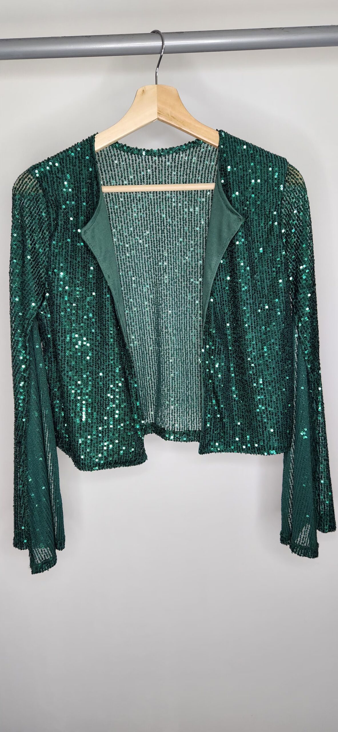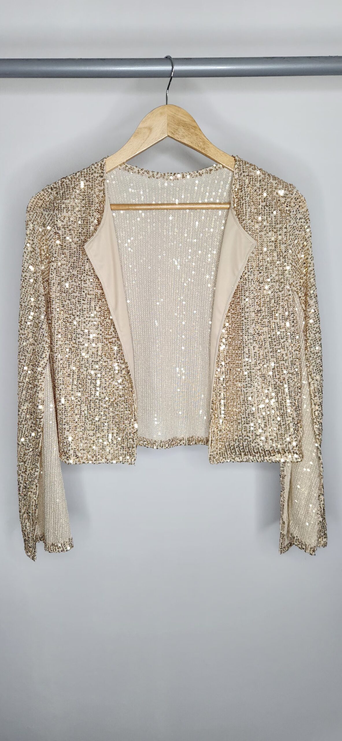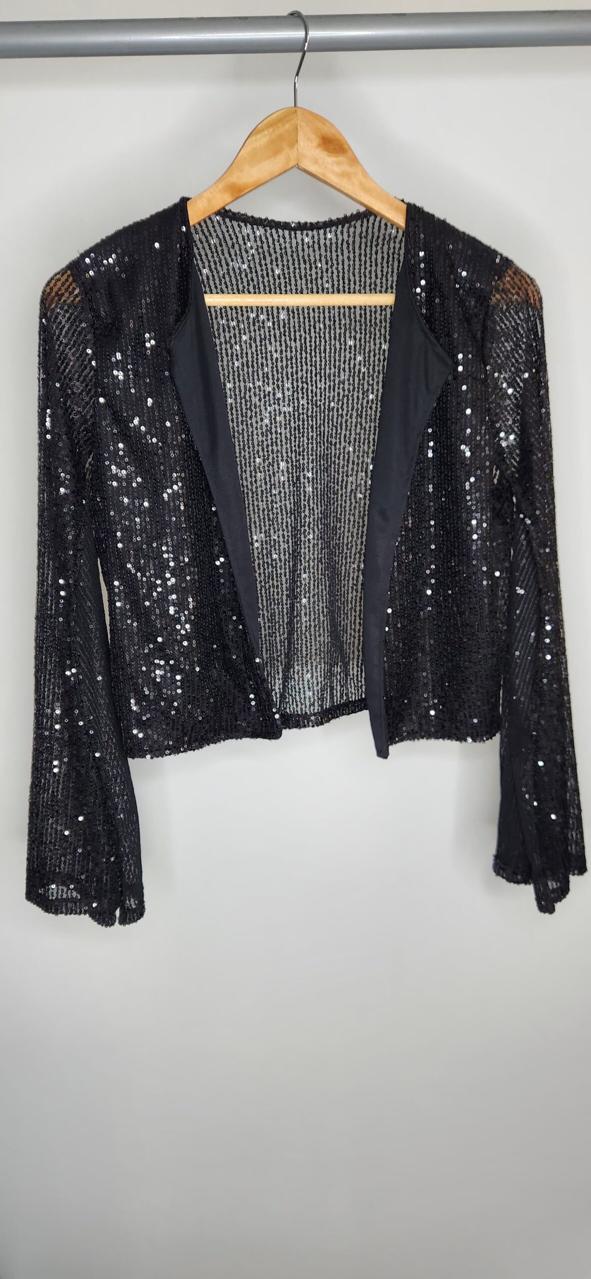 Chaqueta de paillettes,cuello redondo,mangas abiertas,forrada en su parte delantera. Talle único