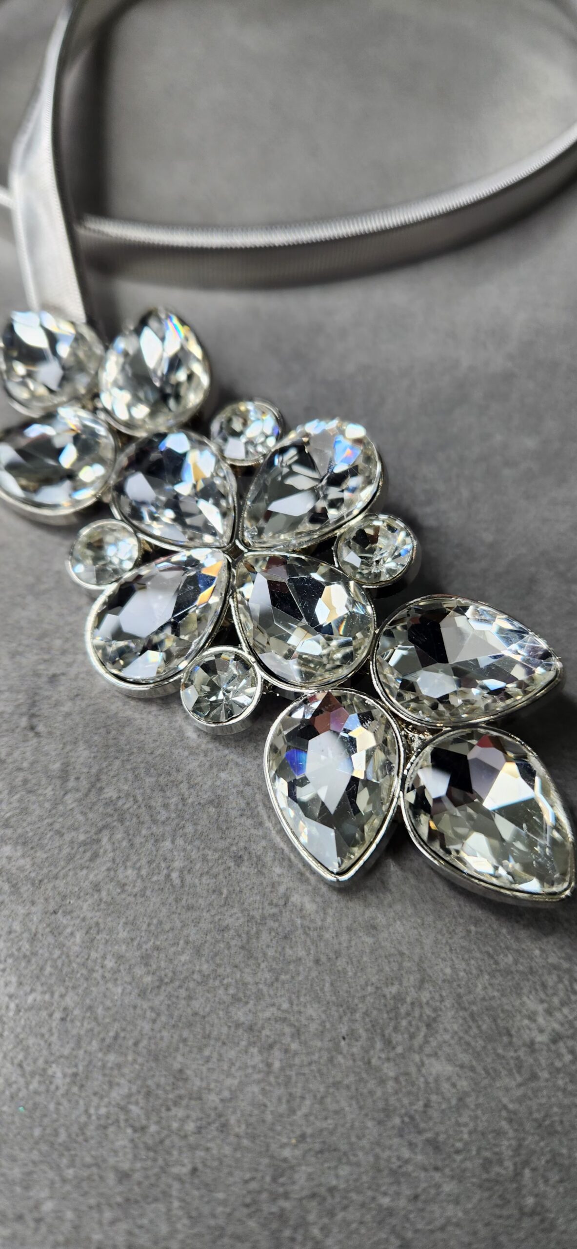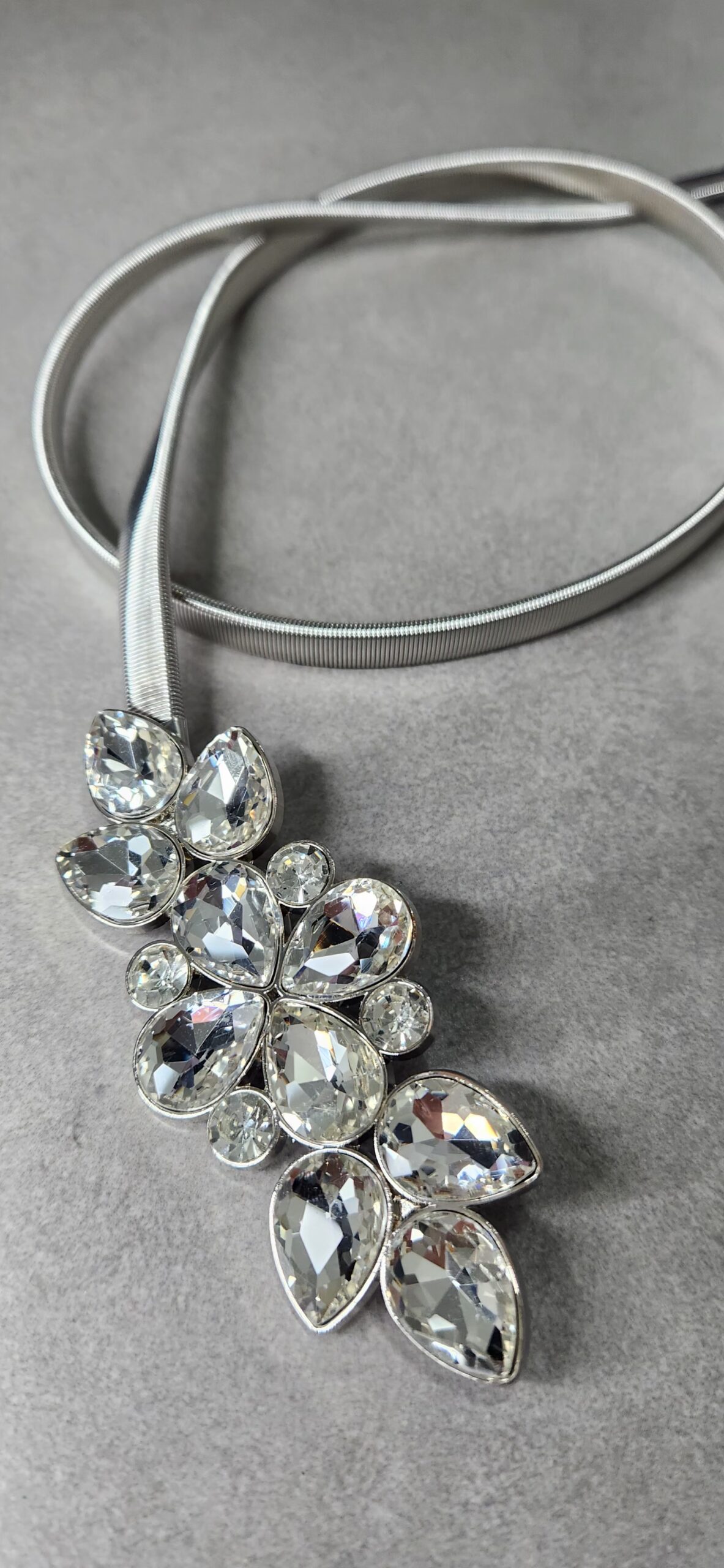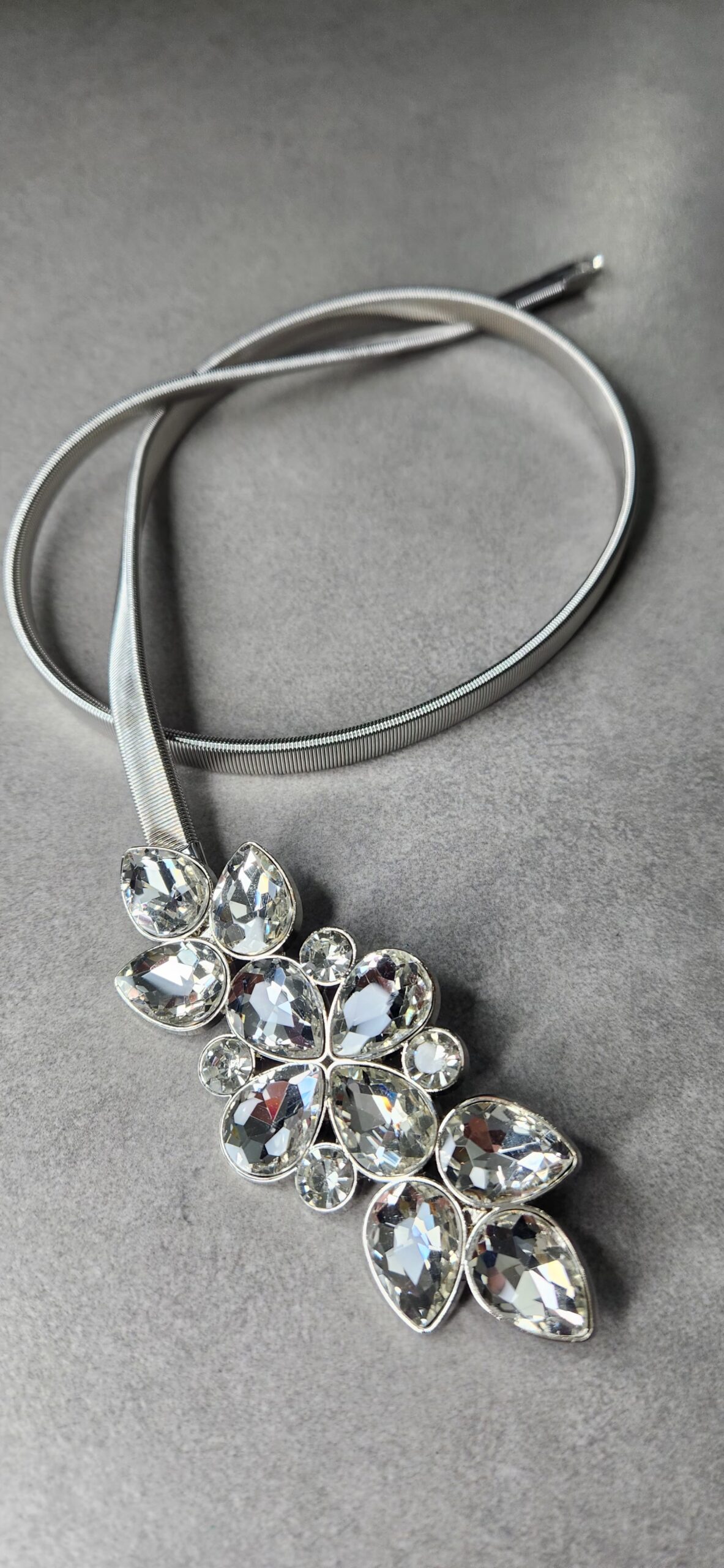 Cinturón elástico, hebilla de piedras que forma una flor con 3 pétalos de cada lado